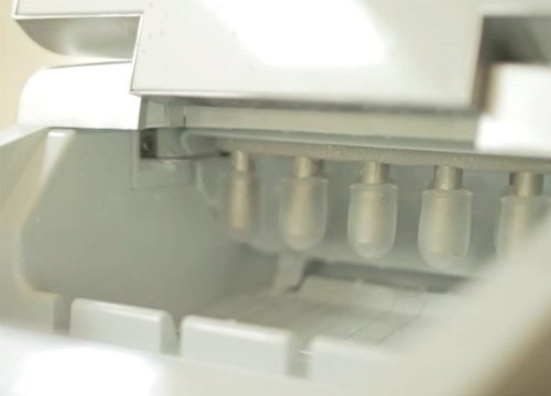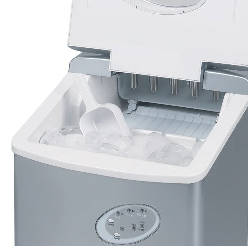 Bei vergleichbaren Maschinen erhalten Sie alleine zwei Größen. Abgerundet wird das Gerät durch die hochwertige Technik. Der geräuscharme Kompressor erlaubt eine schnelle Eiswürfelherstellung, wobei Sie das Gerät warnt, sobald der Eiskorb voll oder der Wassertank leer ist. Was im Inneren der Eiswürfelmaschine vorgeht, sehen Sie über das große Sichtfenster. Die gemachten Eiswürfel werden anschließend mit der mitgelieferten Eisschaufel entnommen.